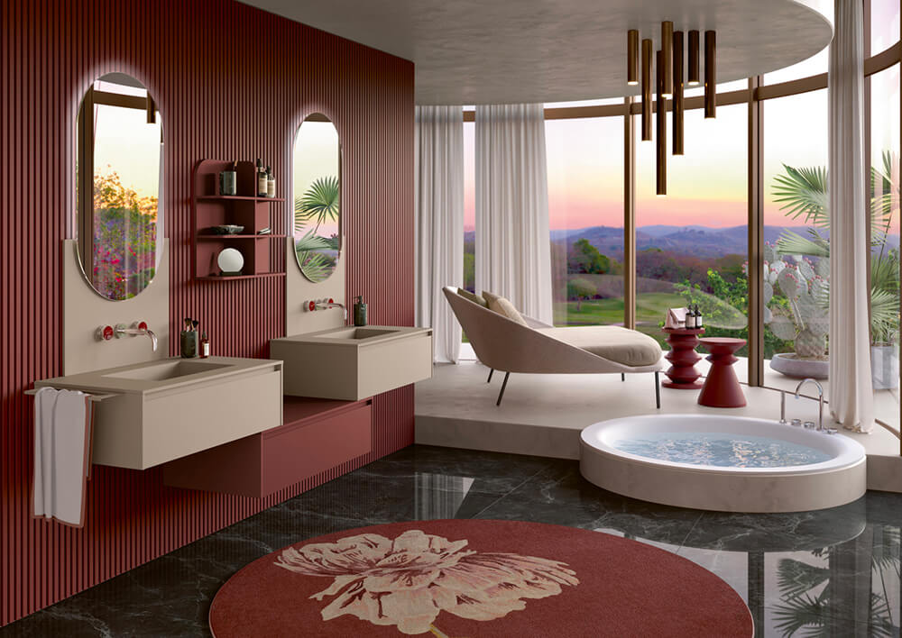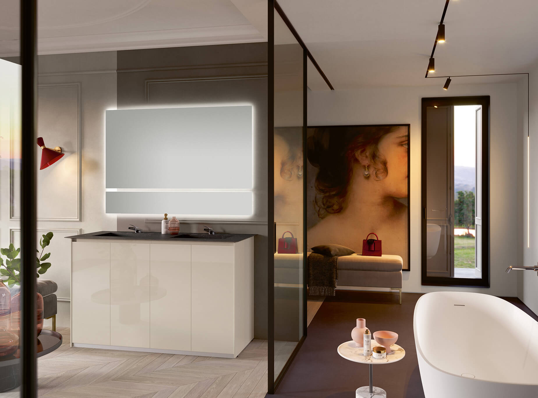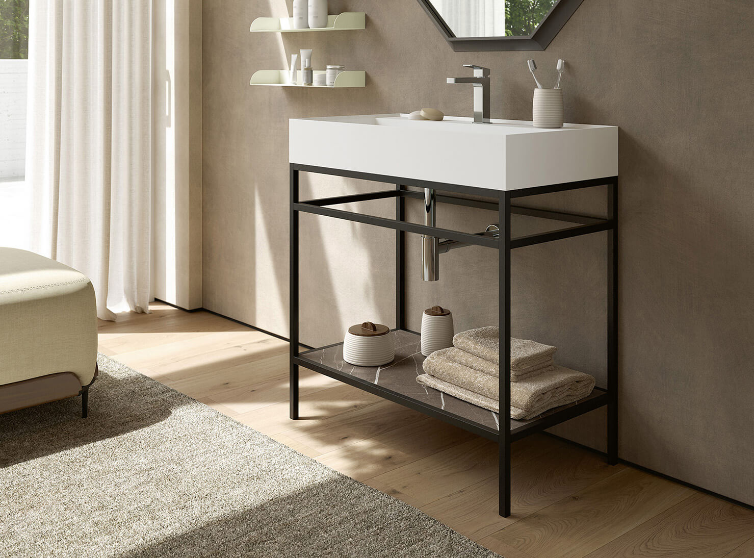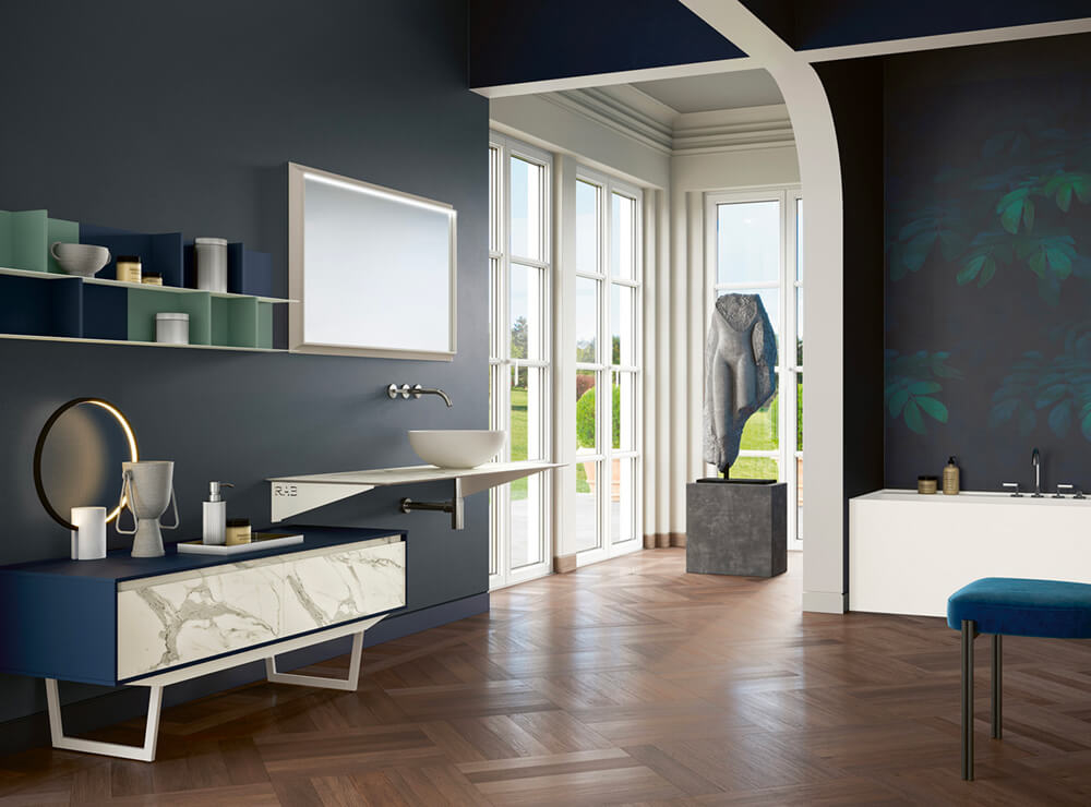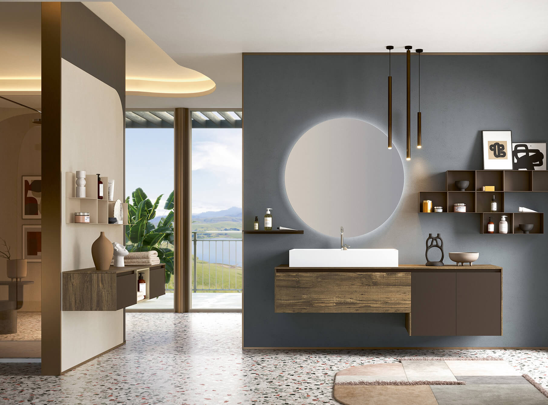 A distinctive contemporary project developed on the choice of innovative materials such as HPL and Fenix. The plain door and its grip with inclined edge enhance these materials. The side panels of the cabinet can be provided in any of the finishes available, giving a wide range of opportunities for customisation.